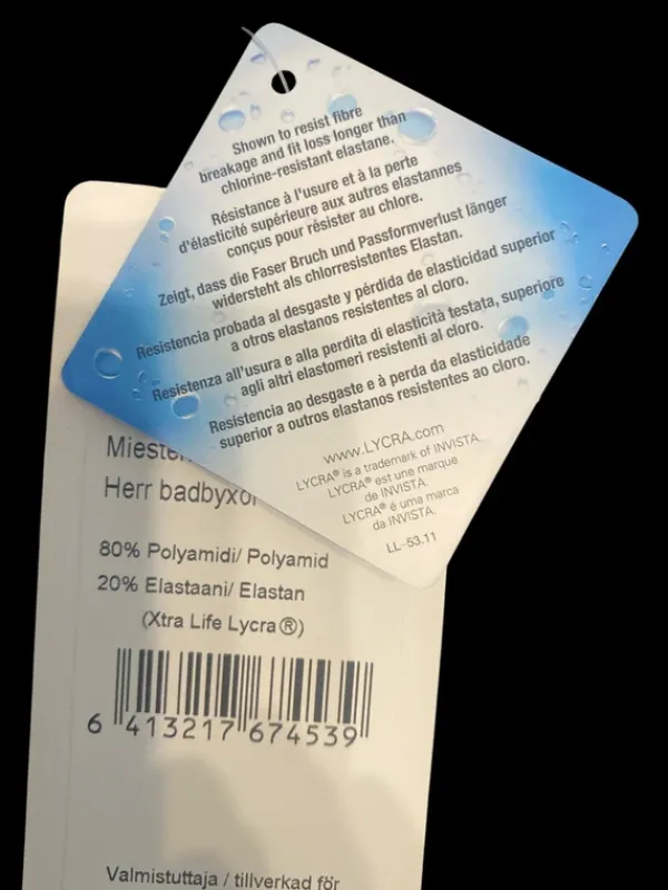 Malli: Finnwear, Rico, lyhyet lahkeelliset uimahousut.Väri: Musta, sivuilla on tummanharmaat tehosteraidat.Materiaali: Valmistettu joustavasta ja nopeasti kuivuvasta neuloksesta (80% polyamidia ja 20 % elastaania/Lycra Xtra Life). Materiaali on suunniteltu kestämään klooria ja säilyttämään muotonsa.Ominaisuudet: Vyötäröllä on kuminauha ja kiristysnyöri. Housuissa on myös vuoripussi etuosassa. Vyötärönympärys 98 cmNäitä löytyy minulta 3 kpl, jos olet kiinnostunut useammasta, niin laitahan viestiä.#swimwear#swimming #miestenuimahousut #uinti #uimahousut #finnwear