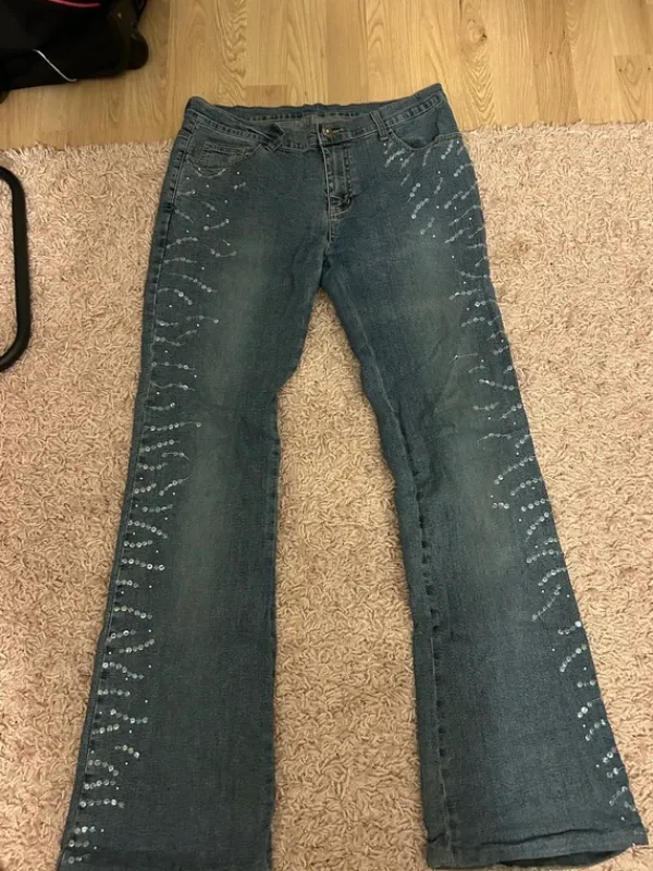 Ihanat 2000s tyyliset farkut. Lahkeissa pientä kulumaa. Koko on about L-XL. En tiedä merkkiä, mutta housuissa on lappu jossa lukee suomeksi.