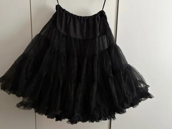 Musta Hell Bunny tyllihame. Koko XS-M, keskipitkä. Käyttämätön.
