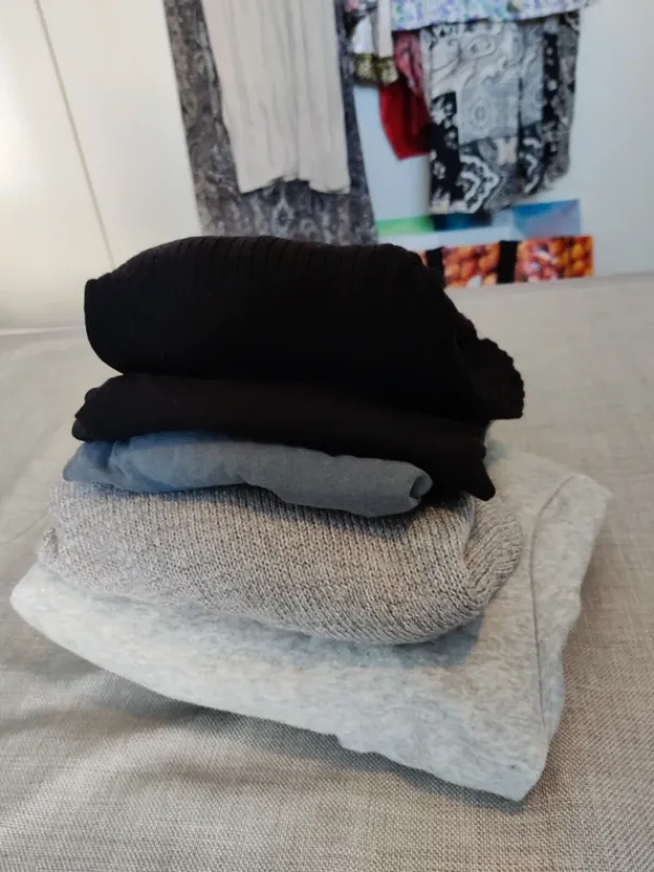 Nämä viisi paitaa settinä koossa s.🤍Huppari, hieman ehkä lyhyt malli vuötäröstä🤍Pitkähihainen ribbipaita, tyköistuva🤍Harmaa neule, hieman lyhyehkö malli 🤍Kropattu musta t-paita🤍Lyhyehkö harmaa t-paitaKaikki siistissä kunnossa, toisia käytetty enemmän ja toisia vähemmän.