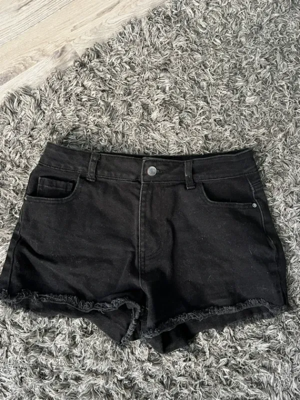 Mustat farkkushortsit koko 36. Käytetyt. Farkkujen takataskussa vaalentunut kohta
