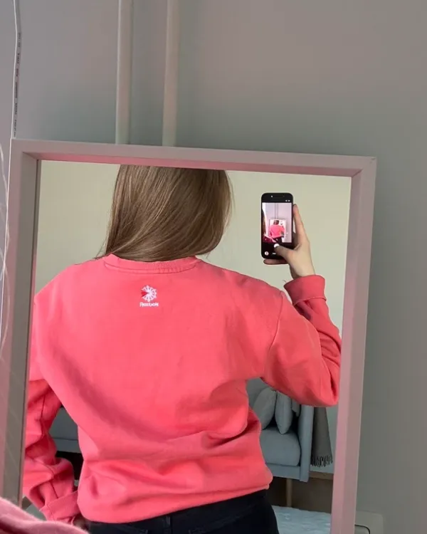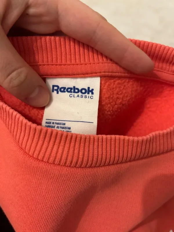 Reebokin lohenpunainen collegepaita. Todella mukava päällä, ja laadukasta materiaalia! Ei ole nukkaantunut yhtään. Ensimmäisissä kuvissa mielestäni näkyy väri parhaiten! Koko S-M.ps. Katsothan muutkin tuotteeni😊