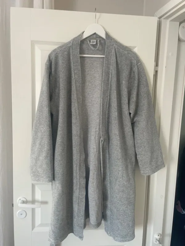 Grå morgonrock från Calvin Klein. Gott skick. Harmaa aamutakki Calvin Kleinilta, kunto hyvä.