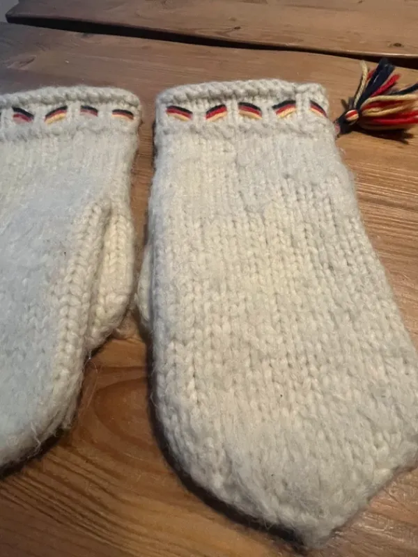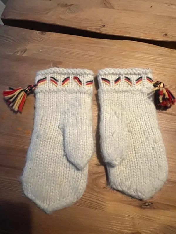 Valkoiset lämpimät lapaset. Köytössä olleet joten pinnalla hieman nukkaa ( mikä näkyy kuvissa). Ei koskaan pesty joten voi olla että valkoinen väri ei ihan sama kuin uutena. Ei mitään isompaa näkyvää likas tai muuta moitetta.