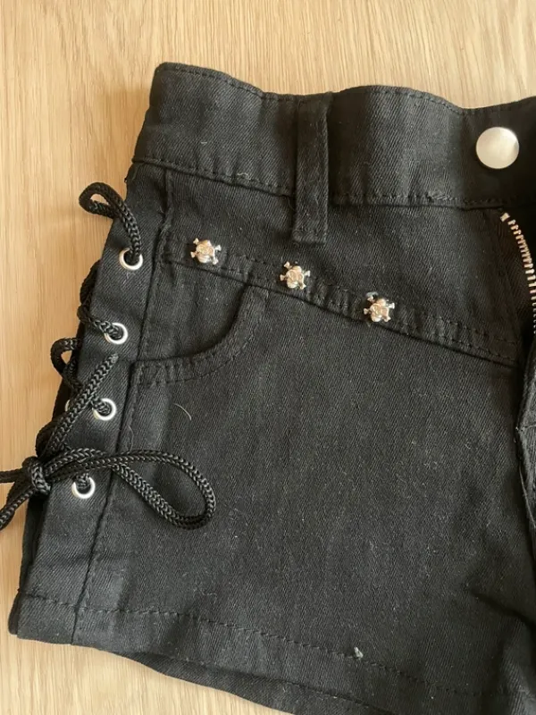 Alternative style denim shorts in perfect condition. Never worn. I would say the size is xxs-xs even though the tag says otherwise. If you have any questions, feel free to dm me!