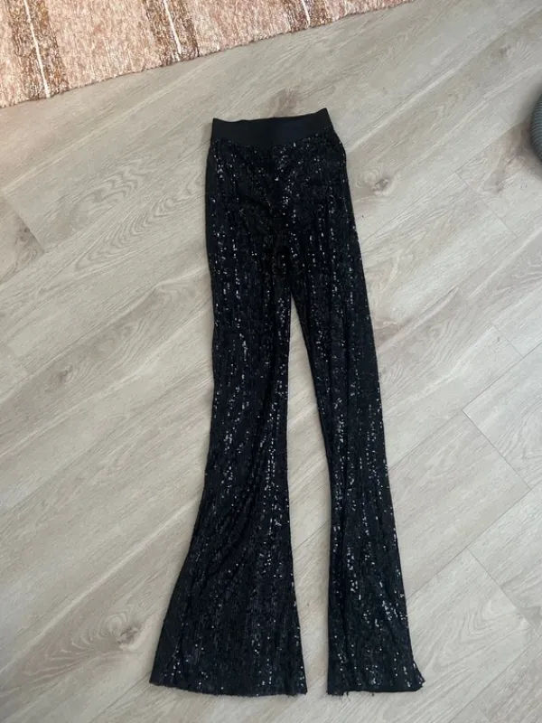 New Bik Bok Mustat paljettihousut levenevillä lahkeilla