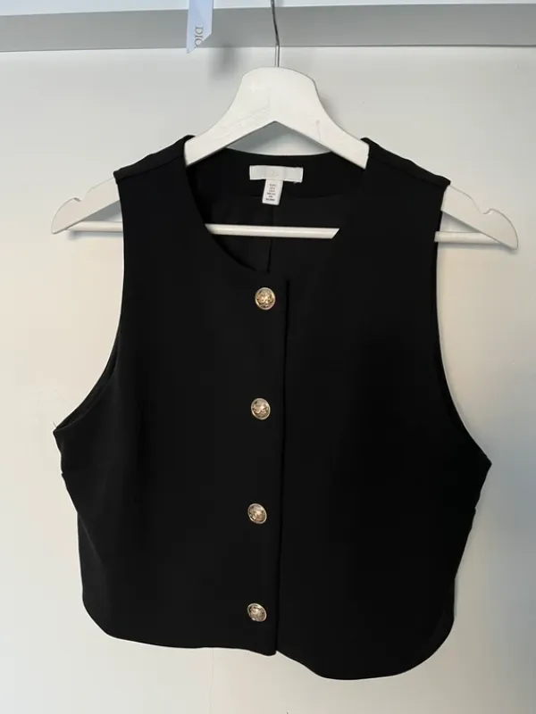 H&M:stä ostettu liivi, kultasilla napeilla. Vain kerran pidetty, joten kunto on uutta vastaava.