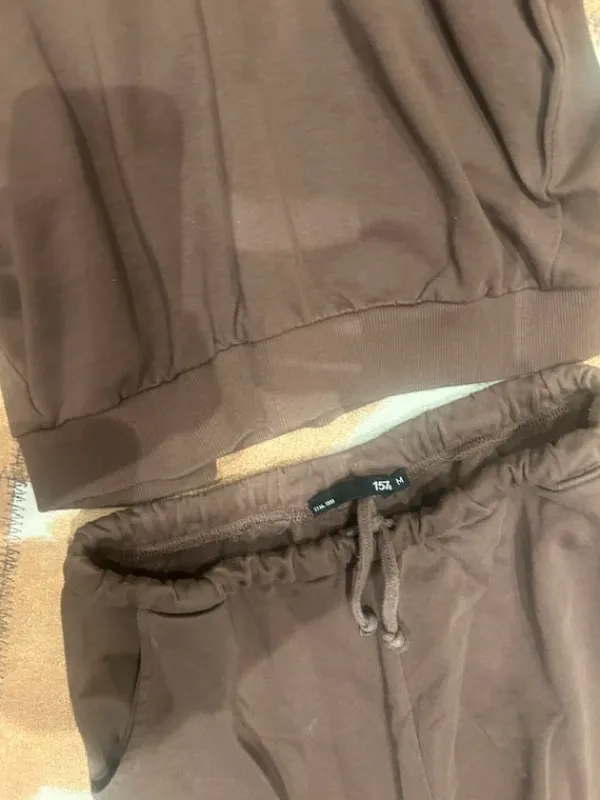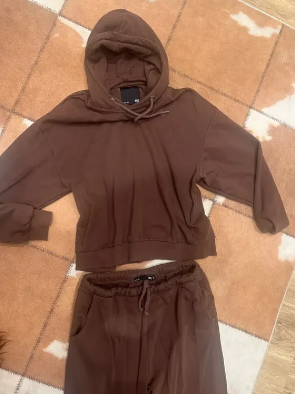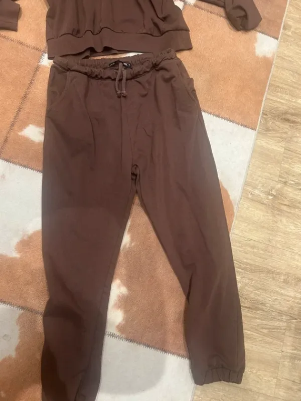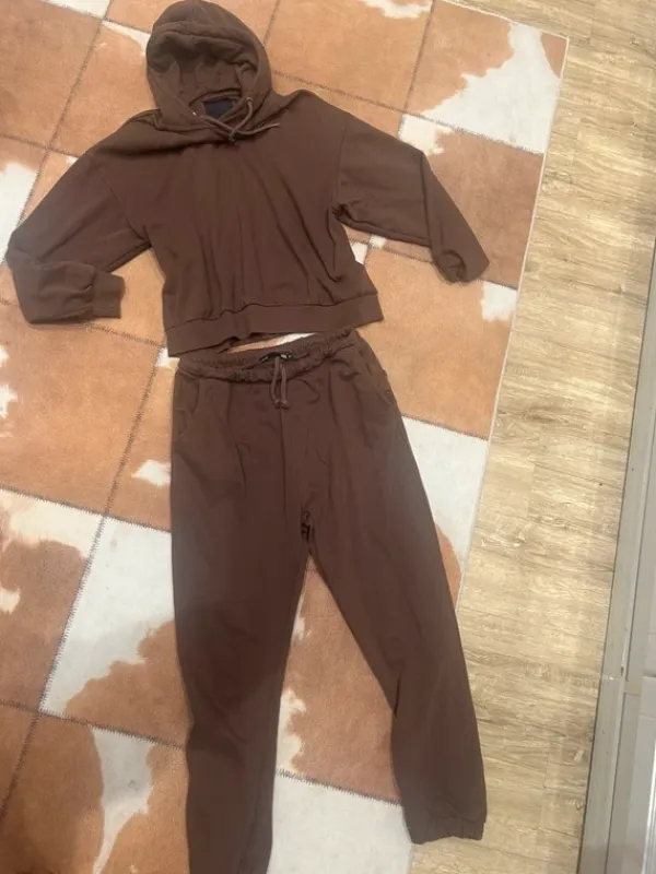 Kiva ruskee setti. Yläosa S ja alaosa M. Nukkaa on.