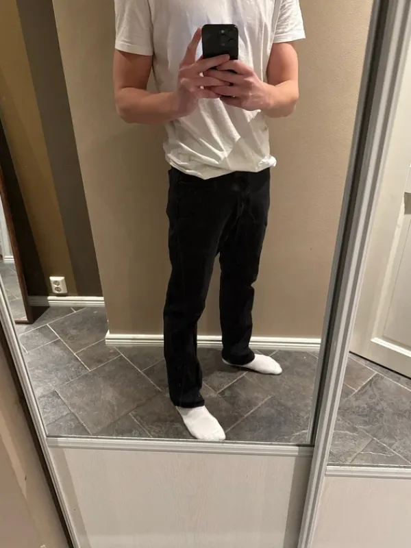 Mustat käyttämättömät hyvänlaatuiset farkut, 32/34