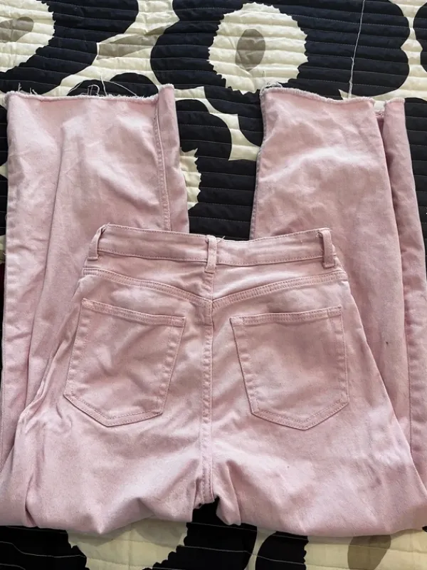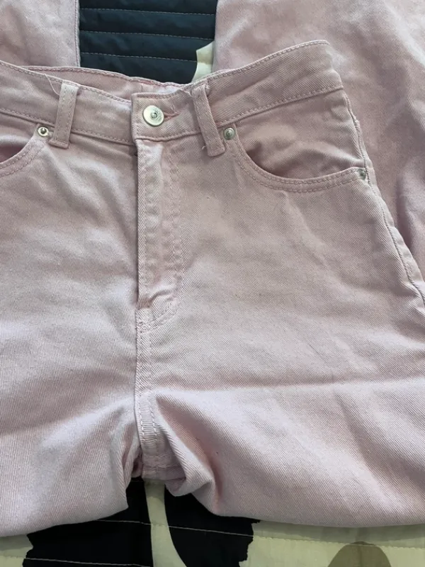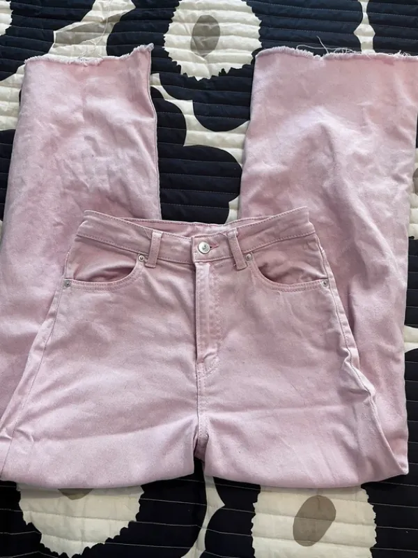 H&M Vaaleanpunaiset leveälahkeiset farkut koossa 36. Käytetty, mutta edelleen hyvässä kunnossa!
