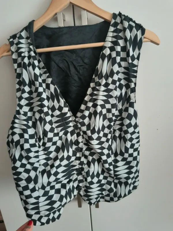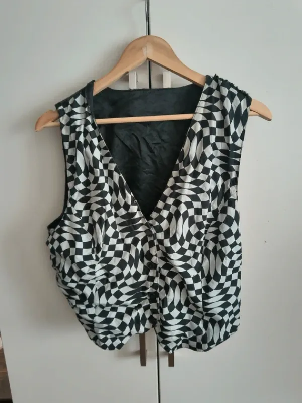 Ruudullinen liivi. En omista silitysrautaa kuten kuvasta näkyy, mutta oikeen passeli rytky muuten