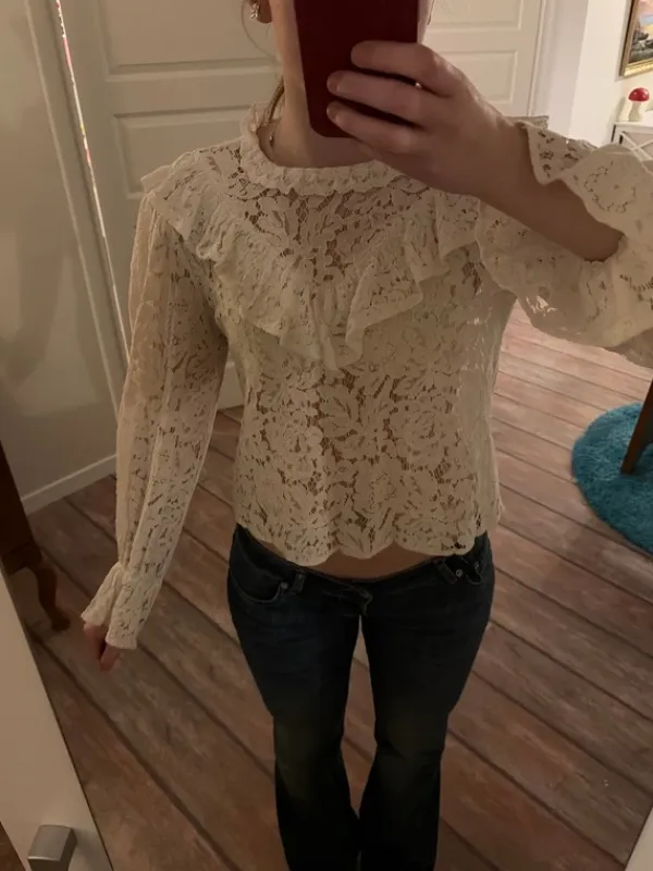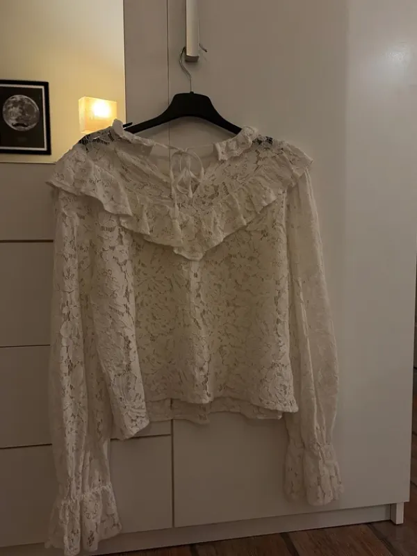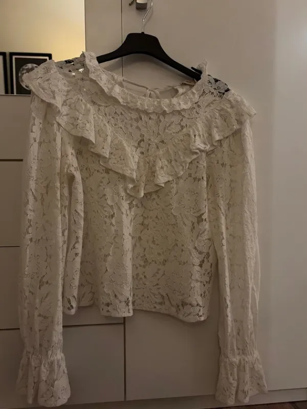 Vit spets blus från nelly i storlek 38. Den är använd ganska mycket men fint skick.