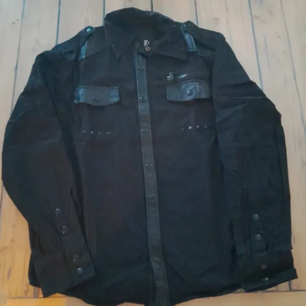 Miesten farkkukankainen kauluspaita Nahka somistein. Pari kertaa ollut vain päällä