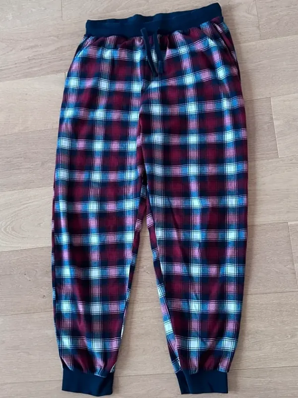 Ihanan pehmeät , joustavaa materiaalia olevat ruutuhousut. Koko M, housujen kokonaiskorkeus 100 cm.