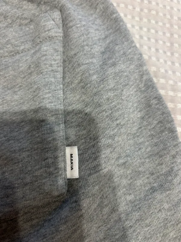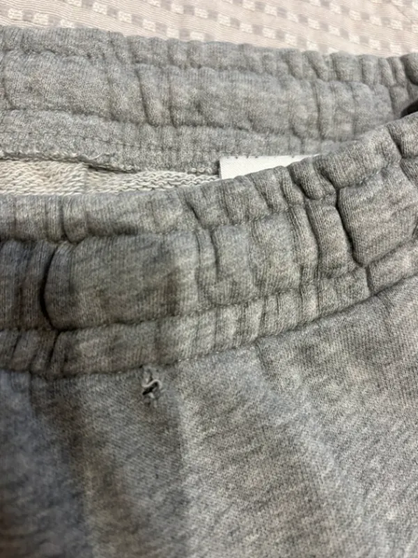Harmaat Makian shortsit edessä hyvin pieni reijän alku ja narut ovat matkanvarella kadonneet.
