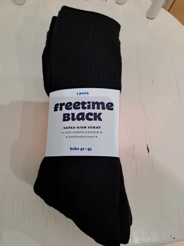 Avaamaton paketti Pilkkoset Freetime mustia sukkia.