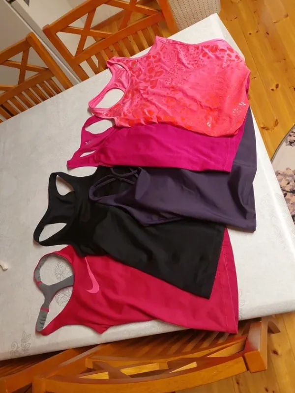 5x urheilutoppi. 2x Nike, 2x Soc ja 1 Adidas. Hyväkuntoiset. Violetissa topissa rintapehmusteet ja tämä kokoa s. Muut xs, mutta menee hyvin s- kokoisellekin. Hinnassa ei tinkimisvaraa.
