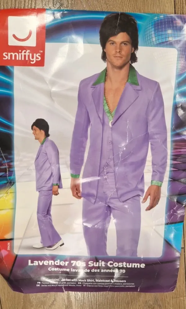Nowy kostium z lat 70tych. Kolor lawendowy, brak naszyjnika ze zdjecia.