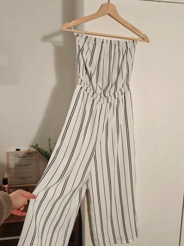 Täältä ostettu olkaimeton haalari. Vain kokeiltu päällä, ei ollutkaan sopiva itselle.Haalarissa parit pienet tahrat, ei näy kuitenkaan kaukaa katsottuna. Saattaa lähteä pesussa, en ole kokeillut 😁Savuton ja eläimetön talous!