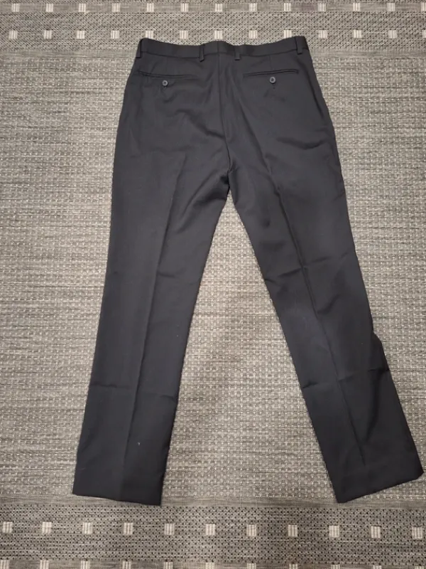Siistit miesten puvunhousut, kokomerkintä W31 L32, mutta puntit lyhennetty, lahkeen sisäpituus 76 cm, ollut sopiva noin 173 cm pitkälle