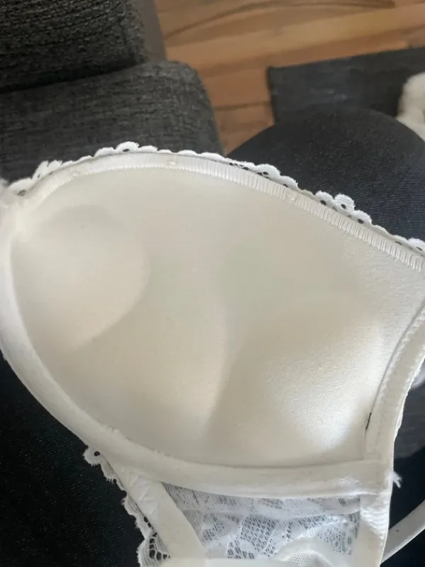 Valkoiset rintaliivit missä on pitsiä. Käyttämättömät. Myyn samoja myös vaalenpunaisina💞