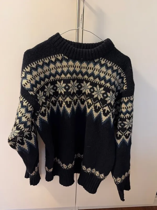 Hyväkuntoinen sininen villapaita. Oma arvioni koosta: M