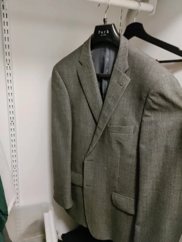 Moitteettomassa kunnossa olevat puvun takki ja housut. Housut kokoa 58 ja takki vastaa L/XL