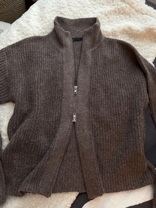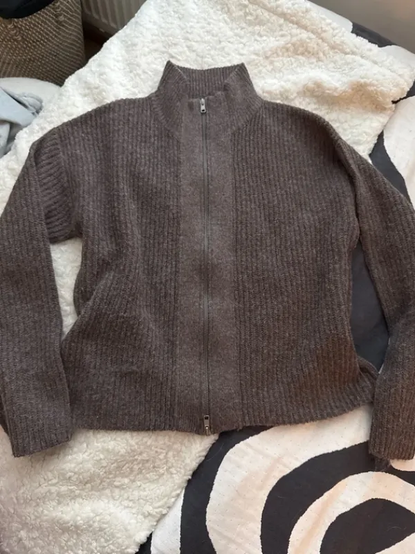 kuin uusi!#lager157 #neuletakki #neulepaita #villapaita #ruskeapusero #zipper