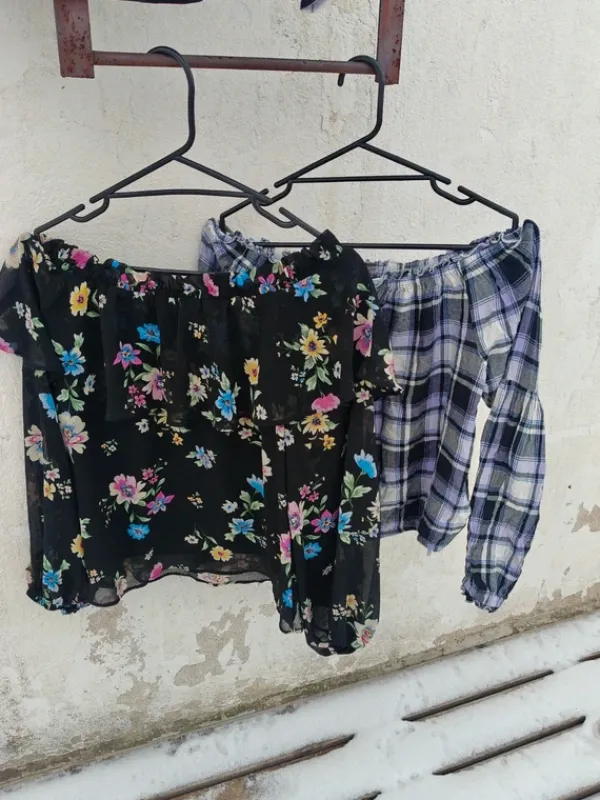 S koossa oleva setti, viimesin raita-paita xs kokoa mutta menee S kokoiselle. Muutamaa vaatetta käytetty enemmän mutta ei vikoja.