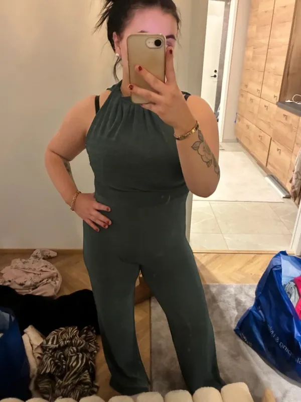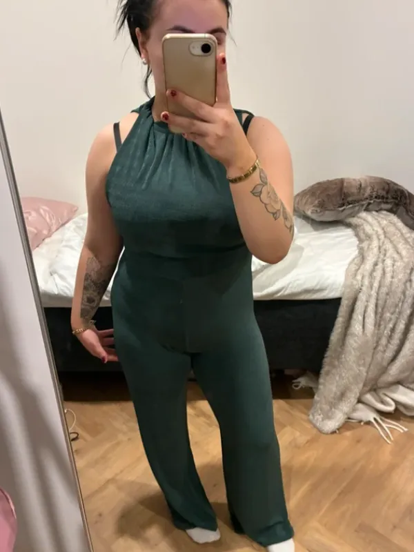 Hyväkuntoinen, ei käytönjälkiä! Ihanaa materiaalia ja joustaa. Sanoisin että koko on s-m. Avoin selkä (Huom pakettialennukset!)#housuhaalari #bikbok