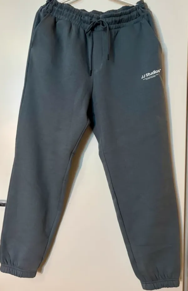Uudet collegehousut. Väri sanoisin on harmaa-sininen.