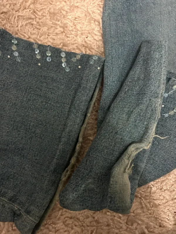 Ihanat 2000s tyyliset farkut. Lahkeissa pientä kulumaa. Koko on about L-XL. En tiedä merkkiä, mutta housuissa on lappu jossa lukee suomeksi.
