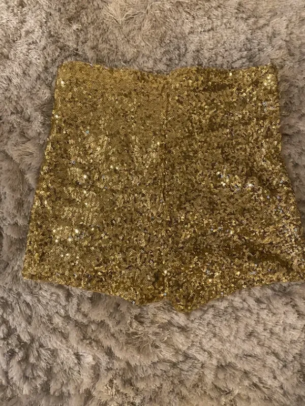 Uudet käyttämättömät ihanat kultaiset H&M:n paljettishortsit koko S laput kiinni. Joustavaa materiaalia. Jäänyt käyttämättä.