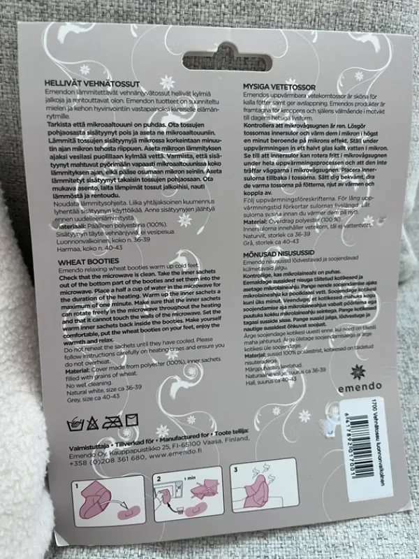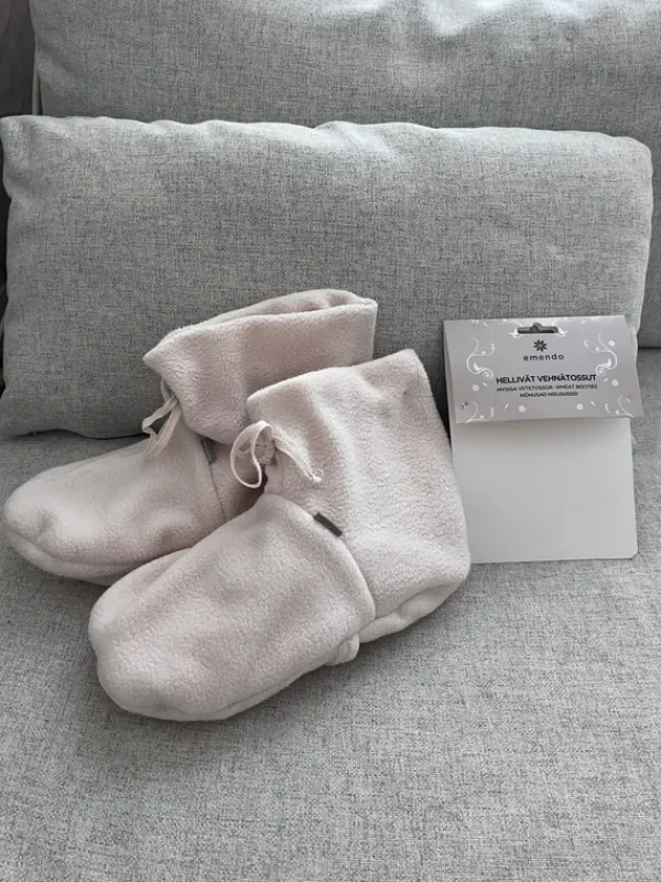 Käyttämättömät aivan ihanat Emendon vehnätossut. Pakkauksesta otettu pois. Emendon lämmitettävät vehnänjyvätossut hellivät kylmiä jalkoja ja rentouttavat olon. Mikrossa lämmitettävä sisus. Ihana kylmiin päiviin/ kipeille jaloille.