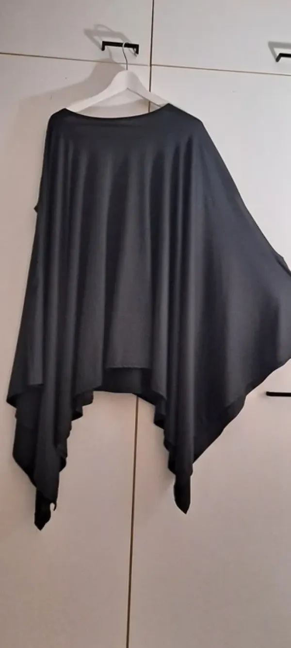 One Size koko.Musta päänyli vedettävä pyöreällä kaula-aukolla. Olkasauman linjasta alaspäin käsiaukot.
