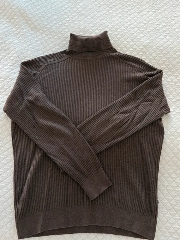 Ruskea poolokauluksinen neule. Käytetty, mutta hyvässä kunnossa.