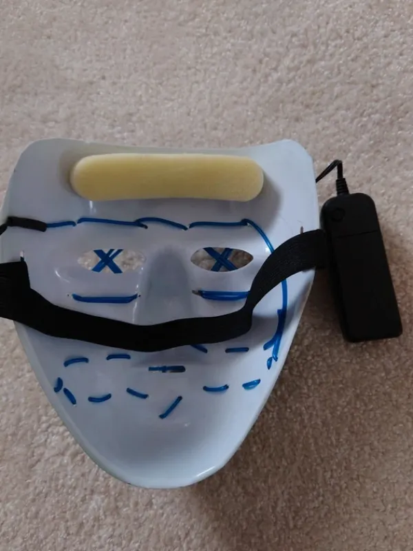 Purge tyylinen maski sinisellä valolla jossa muutama eri toiminto