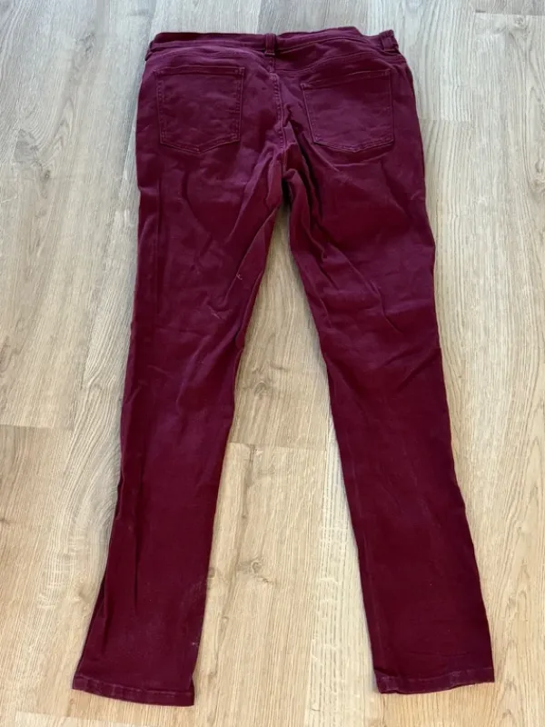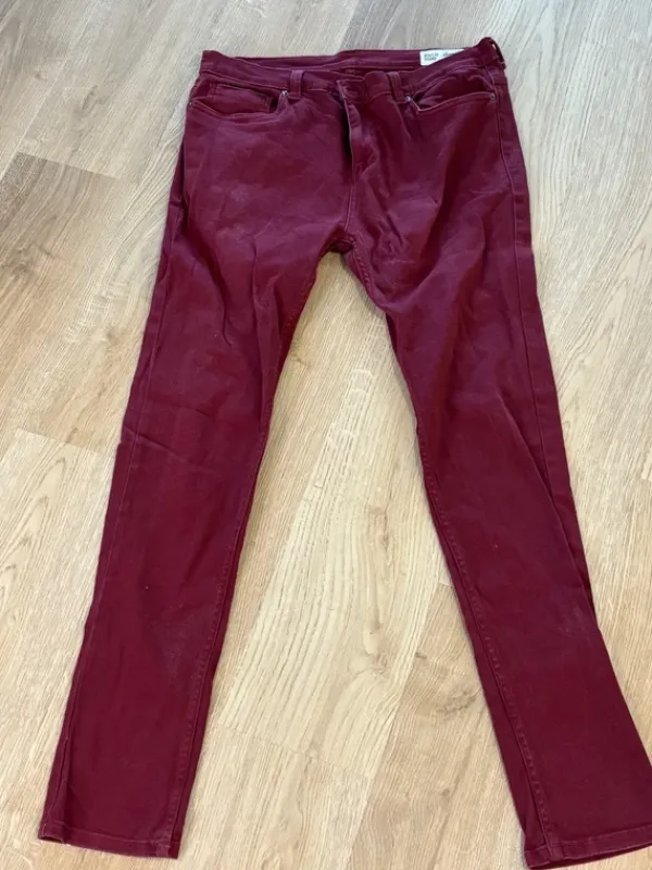 Miesten viininpunaiset farkut, käytetty L koossa. Nää on muistaakseni Primarkista ostettu. Hyvä kunto vielä seuraavallekin! Meillä hajusteeton, savuton, eläimetön ja homeeton talous 🇫🇮