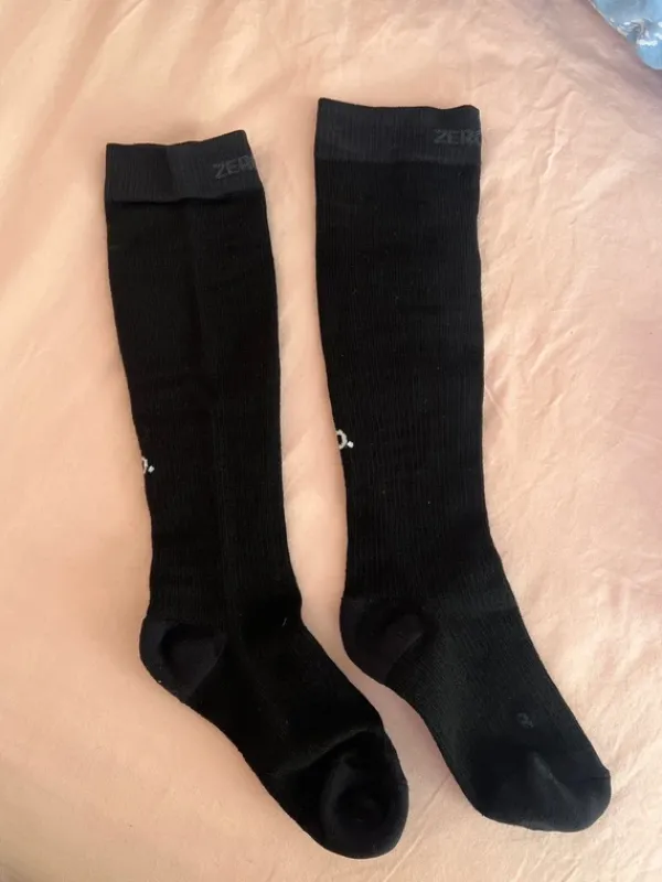 Zeropoint merino wool socks. Koko W1 eli 35-37. Minulle pohkeesta erittäin napakat, jäänyt käyttämättä. Hyvät kuntoiluun, palautumiseen ja lennoille. 50% merino wool25% nylon25% lycra