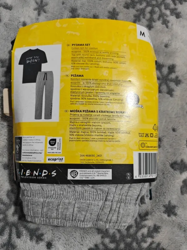 Nowa oryginalnie zapakowana piżama męska z motywem Friends, Przyjaciele.W skład zestawu wchodzi koszulka z długim rękawem i długie.Skład 100 % bawełna Rozmiar M 48/50