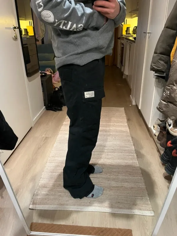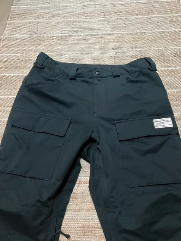 Miesten mustat Analog merkkiset lasketteluhousutHousut ovat hyvässä kunnossa, lahkeista löytyy pieniä käytönjälkiä.Koko: M (Itse olen 182/76 mitoissa havainnollistamaan kuvan housuja)
