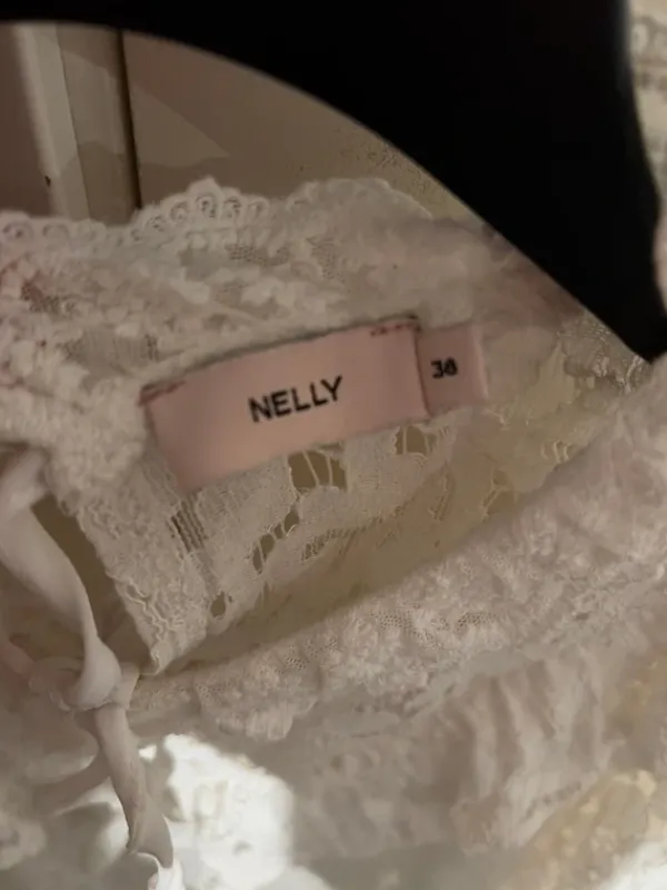 Vit spets blus från nelly i storlek 38. Den är använd ganska mycket men fint skick.