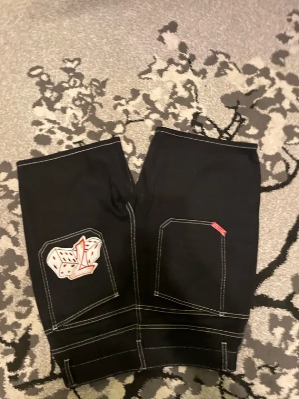 Black jnco jorts with 7 and dices in the back