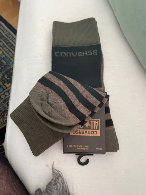 Converse All Star sukat kokoa 39-42. Kahden parin paketti. Materiaali 75 % puuvilla, 23 % nylon, 2 % elastaani. Aito tuote. Koko 39-42, UK 6-8.
