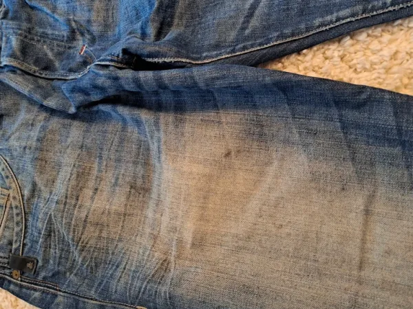 Käytetty ok kuntoiset h&m:n farkut. Edessä reidessä öljy- (?) tahraa. Muuten siisti käytetty kunto.
