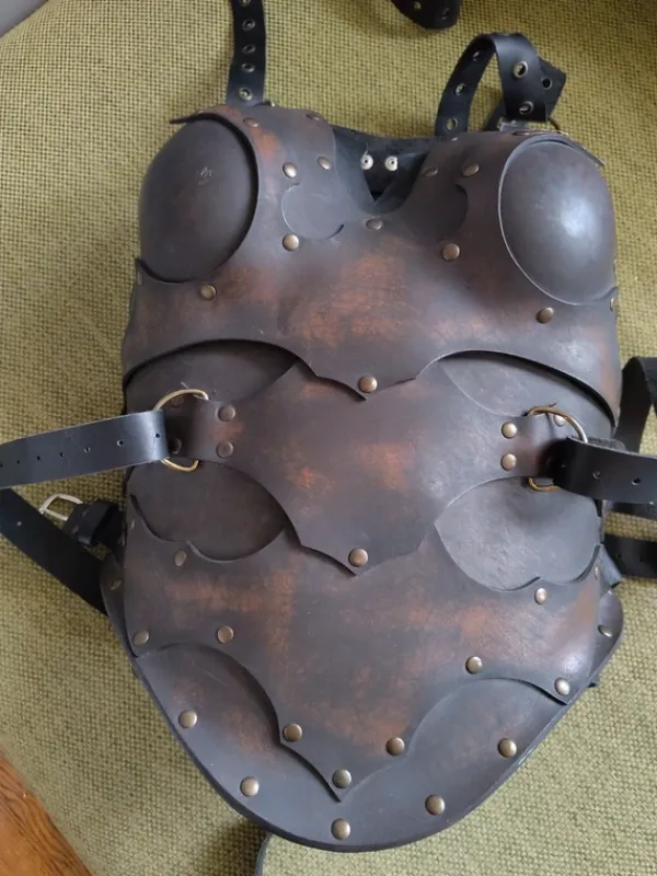 Outlet Harnesk med tuttformer. Läder-rustning.