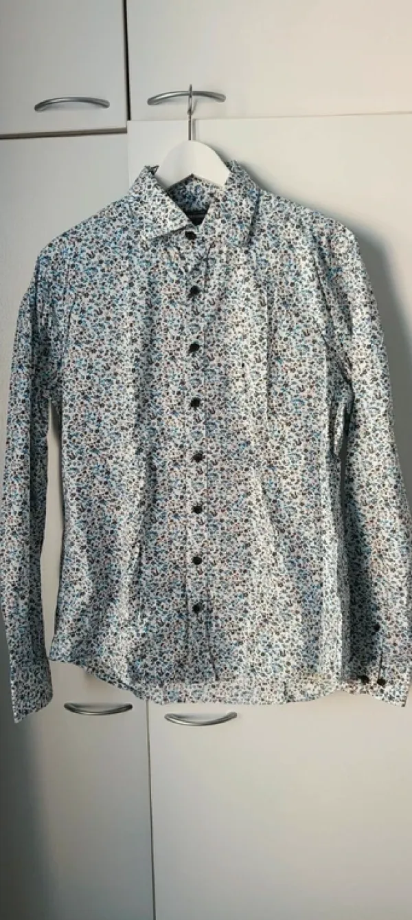 Vähän käytetty Dressmannin kauluspaita. Ohut kangas, joten mukava päällä myös kuumana kesäpäivänä.65% puuvillaa, 32% nylonia ja 3% elastaania.Koko L, slim fit.