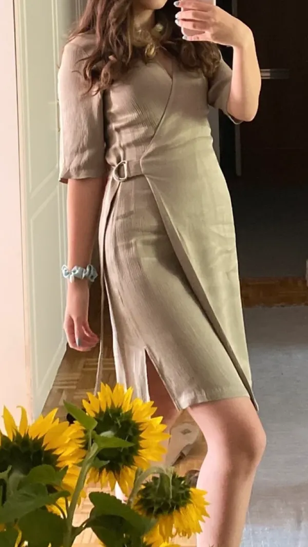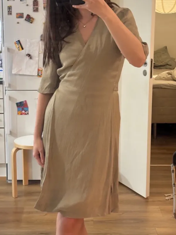 Pleated wrap dress in silvery green🍵