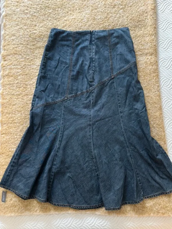 Ihana polvien yli menevä farkkuhame koossa 36. 😊 ollut kaapissa pidemmän ajan eli oletettavastikin rypyssä.