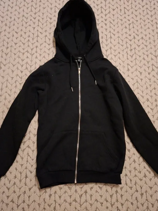 Mustat vetoketjullinen huppari, sopii naisille ja miehille (koko: S/160 cm)